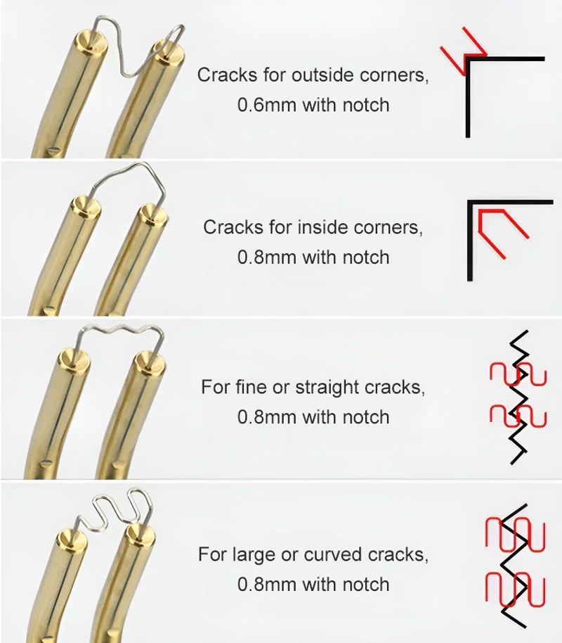 3-IN-1 MULTIFUNCTIONAL PLASTIC WELDING KIT- 6 types of hot stapler are suitable for welding in various scenarios, there are 2 smoothing head and 7 smooth stapler, Combined with other tools, it can repair holes and smooth surfaces, no need to buy extra tools. The 3-in-1 multifunctional Plastic Welder Tool can make welding more sturdy and perfect.