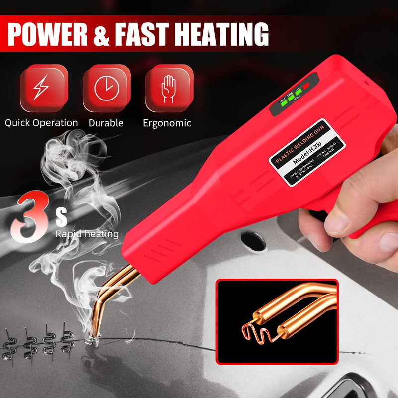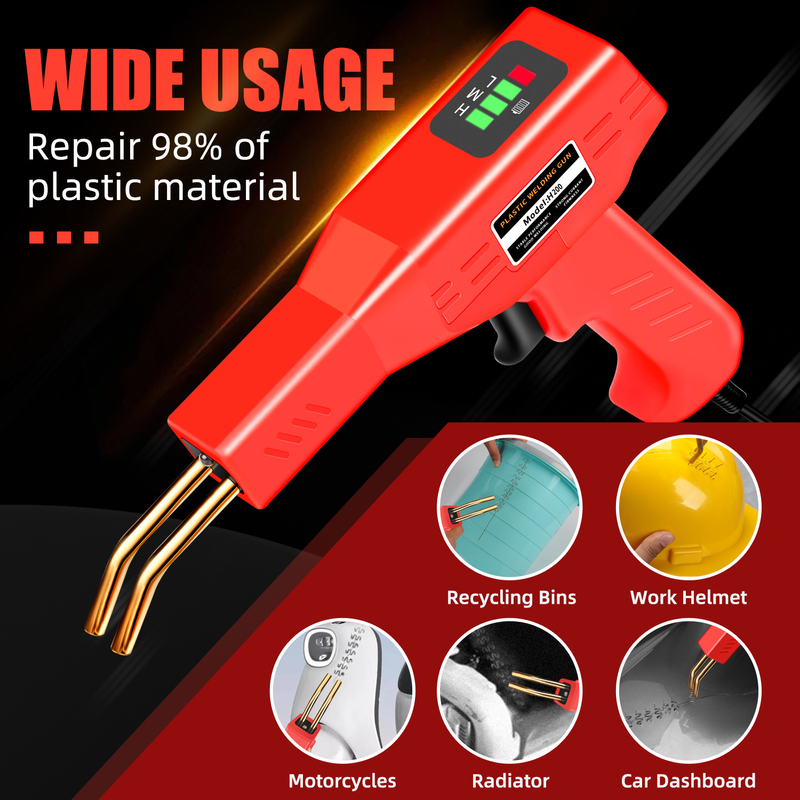 The Professional repair welding gun can be used to repair 98% of the plastic products on the market. Such as car bumper repair, car dashboards, lamp holders, canoes,kayaks, children's plastic toys and other household plastic items. Extends the lifespan of the item while maintaining its beautiful appearance.