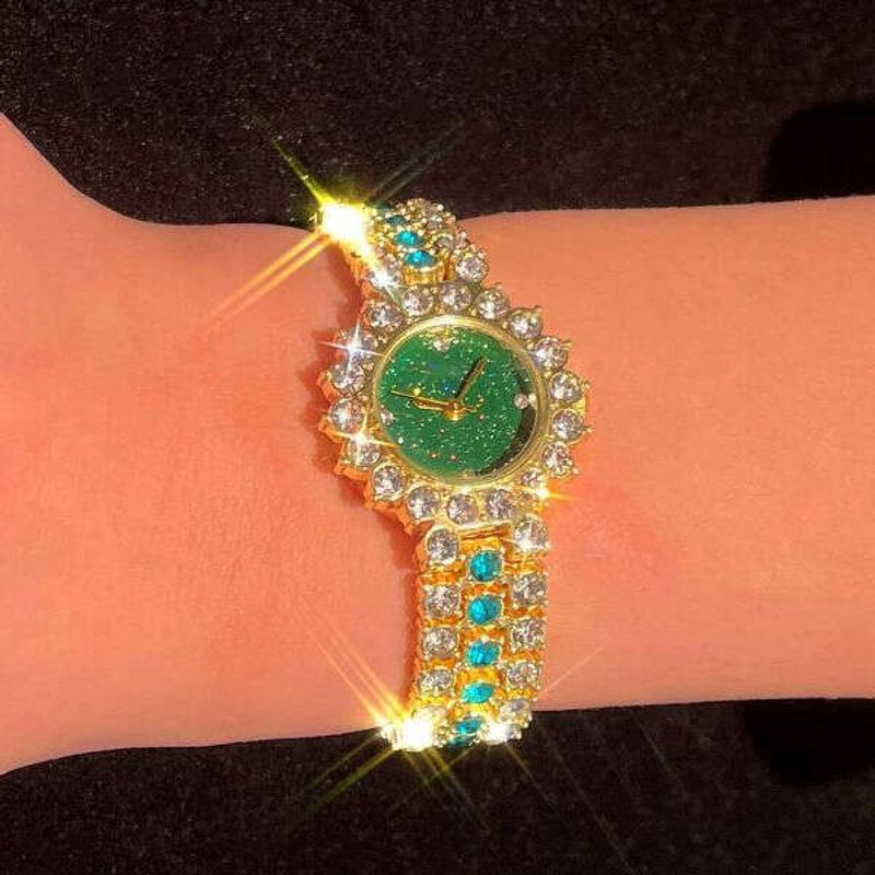 Women's watch set (earrings, bracelet, rhinestone necklace)